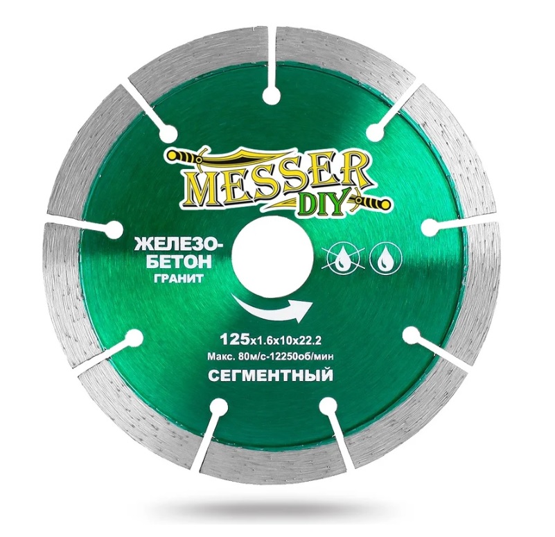 Алмазный диск по железобетону, граниту MESSER 125D-1.6T-10W-22.23H