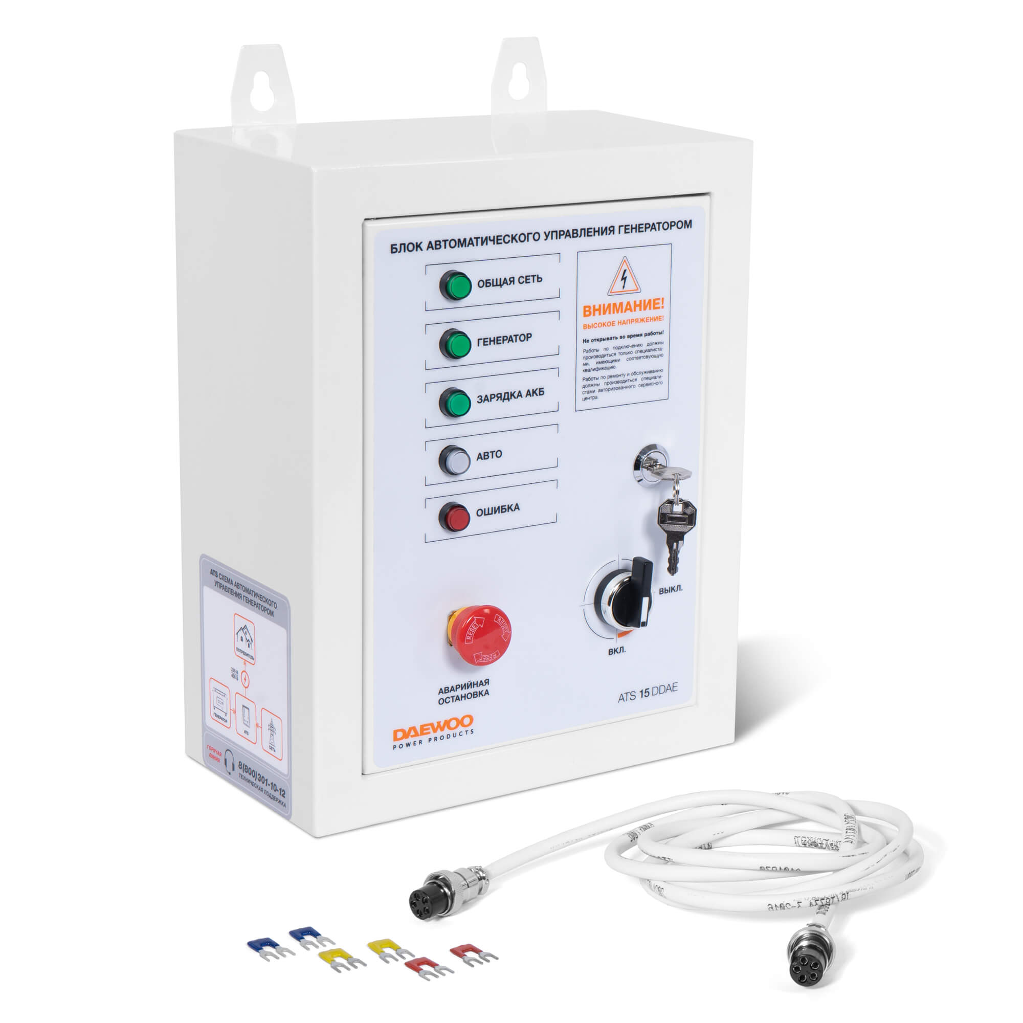 Блок автоматического управления DAEWOO ATS 15 DDAE обеспечивает автоматический запуск электростанции в случае падения напряжения в основной сети или прекращения подачи электроэнергии.
