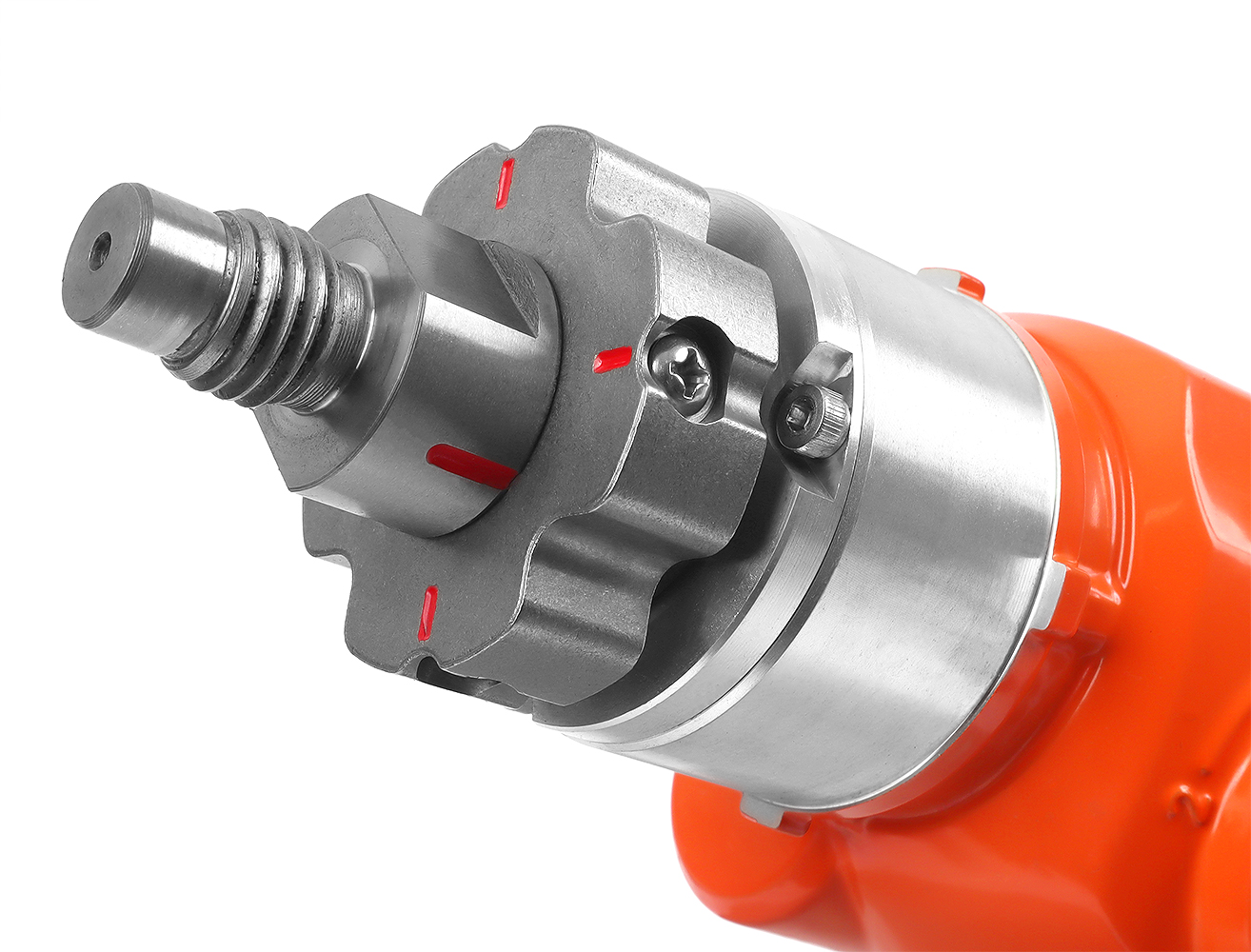 Предохранительная муфта защищает двигатель и редуктор от повреждений в случае заклинивания коронки. В комплектацию входит редукционный переходник с резьбы М18 на ½ и 1 1/4 дюйма, а также предусмотрена возможность подключения пылесоса для удаления пыли и поддержания чистоты на рабочем месте.