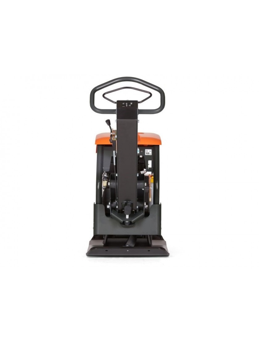 Рабочая плита шириной 500 мм обеспечивает точную обработку поверхности и равномерное распределение усилия по всей площади контакта. Прочная стальная рама защищает двигатель и трансмиссию от ударов и абразива, повышая надежность виброплиты при интенсивной эксплуатации. Удобная рукоятка облегчает управление направлением движения и снижает нагрузку на оператора.